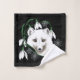 An Arctic fox gazes outward in this Art Nouveau inspired portrait. Four snowdrop flowers encircle the fox with white snowflakes. Set against a black backdrop