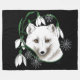 An Arctic fox gazes outward in this Art Nouveau inspired portrait. Four snowdrop flowers encircle the fox with white snowflakes. Set against a black backdrop