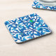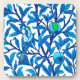 Coasters in a William Morris Art Nouveau tapestry pattern of exotic birds in a pomegranate tree, with cobalt and cerulean blue leaves, birds and fruit in cobalt blue and turquoise, accented with lime green, on a white background