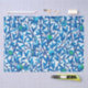 Tissue paper in a William Morris Art Nouveau tapestry pattern of exotic birds in a pomegranate tree, and fruit in cobalt blue and turquoise, accented with lime green, on a white background