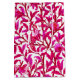 Gift bag in a William Morris Art Nouveau tapestry pattern of exotic birds in a pomegranate tree, with fuchsia pink and violet leaves, birds and fruit in fuchsia and orchid pink on a white background