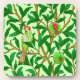 Coasters in a William Morris Art Nouveau tapestry pattern of exotic birds in a pomegranate tree, with emerald green leaves, birds and fruit in lime green and deep ruby red, and a pastel lime green background