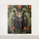 Black cat and red flowers art nouveau style, William Morris inspired art.
