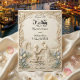 Capture the timeless elegance of a fairytale union with this heritage-style design, featuring a romantic garden scene in a soft, monochromatic ivory palette.This design draws inspiration from the grandeur of early 20th-century craftsmanship, presenting a sophisticated visual narrative. The background simulates a sculpted limestone surface, creating a high-fidelity visual texture of bas-relief masonry. Central to the composition is a classically rendered scene of a groom kneeling before a bride within a formal architectural gazebo, surrounded by a cobblestone path. The imagery is framed by quintessential Art Nouveau biological curves, featuring swirling vines and delicate pastel blue tulips that break the monochrome ivory and cream spectrum. The typography hierarchy balances formal serif headers with elegant calligraphy script for names, ensuring legibility against the textured backdrop.This is a flat printed image with a faux carved stone effect, not actual raised material or deep embossing.