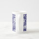 Art Nouveau Carnation Damask, Navy and White Bone China Mug