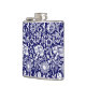Art Nouveau Carnation Damask, Navy and White Hip Flask
