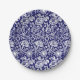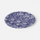 Art Nouveau Carnation Damask, Navy and White Paper Plate