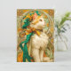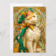 A majestic cat with lush, detailed fur sits gracefully among an ornate arrangement of flowers and swirling vines, all framed within an intricate Art Nouveau-style design. The cat gazes upward with serene wisdom, bathed in soft golden light, while the background blooms with rich pastel and earth tones, creating a sense of timeless beauty and natural elegance.