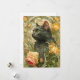 A majestic cat with lush, detailed fur sits gracefully among an ornate arrangement of flowers and swirling vines, all framed within an intricate Art Nouveau-style design. The cat gazes upward with serene wisdom, bathed in soft golden light, while the background blooms with rich pastel and earth tones, creating a sense of timeless beauty and natural elegance.