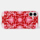 Phone case in an Art Nouveau textile pattern, based on a vintage William Morris chinoiserie ceramic tile design, digitally rendered and coloured for a soft, watercolor effect - blush pink and white on a deep Chinese red background