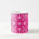 Art Nouveau textile pattern coffee mug, based on a vintage William Morris chinoiserie ceramic tile design, digitally rendered and coloured for a soft, watercolor effect - pink and white on a deep fuchsia pink background