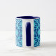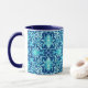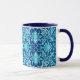 Art Nouveau textile pattern coffee mug, based on a vintage William Morris chinoiserie ceramic tile design, digitally rendered and coloured for a soft, watercolor effect - turquoise and white on a cobalt blue background