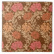 Tile in a vintage William Morris, Art Nouveau, floral print of stylised chrysanthemums, digitally enhanced and coloured, in tan, rust terracotta, and coral, on a deep chocolate brown background