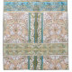 A collage of floral textile art by maurice verneuil featuring daffodil designs. A unique, vintage, victorian, art nouveau image tile. In colours of peach pink, blue, white and green.