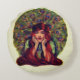 An art nouveau, art deco vintage illustration of a long haired, red headed woman framed with peacock feathers An elegant vintage illustration of a classic beauty.