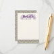 An elaborately detailed light yellow Art Nouveau enclosure card featuring a pattern of lilac lovebirds and lavender butterflies in profile perched atop scrolling vines of purple thistle on a pale yellow background. The decorative floral announcement text color can be changed in the editing panel to meet your needs.