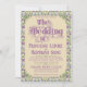 An elaborately detailed Art Nouveau wedding invitation featuring a pattern of lilac lovebirds and lavender butterflies in profile perched atop scrolling vines of purple thistle on a pale yellow background. A pairing of elegant fonts has been carefully selected to accompany this invitation's decorative floral announcement text, however, they can be changed to meet your needs. You can also change their colors, as well as the color of the announcement text.