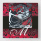 ART NOUVEAU FAUN Red Burgundy,Black Damask Square Wall Clock