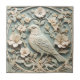 Art Nouveau Faux Relief Bird Flower Blossoms Mint Tile