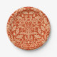 Art Nouveau damask pattern paper plates of flowers, oak branches and leaves, based on a vintage William Morris textile design, digitally enhanced and coloured in deep mandarin orange and pastel orange