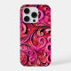 An ornate, baroque-inspired pattern fills the entire frame, composed of richly detailed, three-dimensional scrollwork reminiscent of acanthus leaves. The design features flowing, curvilinear spirals that intertwine and overlap, creating multiple layers of depth. Strong relief and directional lighting produce dramatic shadows in deep burgundy and pink tones, while raised surfaces catch highlights in vibrant magenta, hot pink, coral, and soft peach. The surface appears smooth and polished, suggesting materials like carved wood, molded plaster, embossed leather, or metalwork. The overall look is luxurious, romantic, and highly decorative, balancing symmetrical and asymmetrical flourishes for a dynamic, classical aesthetic with a bold, passionate color scheme.