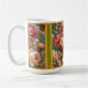 PERSEPHONE Mug. Beautiful mug featuring panelled design of woman with peonies and pomegranates. Vintage Art Nouveau inspired look. Generative Art design.