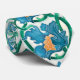 This is a pattern of old vintage Art Nouveau tiles with blue flowers with a yellow centre, green stems and leaves on a white background.