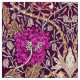 Fabric in a vintage William Morris, Art Nouveau, floral print of honeysuckle vines and carnations, digitally enhanced and coloured, in plum, beige, tan and cream, on a deep aubergine purple background