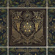 This exquisite ceramic tile features a stunning Art Nouveau-inspired design, intricately detailed with golden botanical illustrations against a deep navy background. The motif showcases a central floral mandala surrounded by elegant branches of berries and leaves, with celestial elements like a radiant sun and stars adding a touch of mystique. The precise lines and symmetrical composition evoke a sense of timeless elegance, making it a perfect addition to any space seeking a sophisticated and artistic touch. Whether used as a standalone decorative piece or as part of a larger installation, this tile brings a unique blend of nature-inspired beauty and classic artistry into your home.