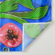 Tapestry in an Art Nouveau inspired illustration of a brown and cream coloured owl on a cobalt blue and coral orange floral background