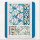 An elegant art nouveau vintage textile art featuring lilies and irises. In colors of blue, gray, yellow and white.