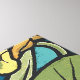 The striking contrast between the golden yellow petals, lush green foliage, and the vibrant teal and cerulean blue background creates a stained-glass effect that is both decorative and sophisticated. Perfect for maximalist interiors, Art Nouveau collectors, or anyone looking to add a touch of early 20th-century French flair to their space. This timeless botanical illustration brings a sense of artisanal craftsmanship and natural harmony to any product.