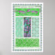 An interesting and unique print from an old world tile. Featuring baboons, skulls parrots, decorative prints and vine covered pillars. In colors of green purple, pink, turquoise, black and white. Interesting and unique.
