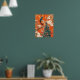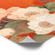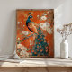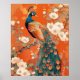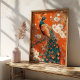 This poster captures the essence of Art Nouveau with a majestic peacock adorned in intricate details. Set against a vibrant orange floral backdrop, this piece is a stunning blend of nature and elegance.