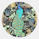 Art Nouveau Peacock Print, Cobalt Blue & Green Classic Round Sticker