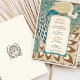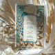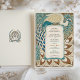 This stunning Art Nouveau wedding invitation showcases an intricate peacock illustration with elegant, flowing feathers in deep blues, soft greens, and warm golds. Inspired by the luxurious aesthetics of the early 20th century, the ornate botanical frame and delicate detailing add a sophisticated, vintage touch. The invitation blends fine decorative elements with refined typography, making it perfect for couples who appreciate timeless elegance. The back features a minimalist emblem with an intertwined floral motif, adding an artistic and personal touch. Ideal for weddings with a vintage, nature-inspired, or Art Nouveau theme.