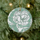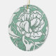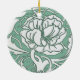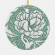Am Art Nouveau design of stylised flowers and leaves, created by famous artist Aubrey Beardsley, c. 1892. In white on light teal green.
