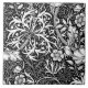 Art Nouveau, fantasy underwater floral pattern tile of graceful seaweed, leaves and flowers, based on a vintage William Morris textile design, digitally enhanced and coloured in white and charcoal grey on a black background
