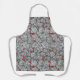 Apron in an Art Nouveau pattern of strawberry plants, with leaves, flowers and berries, based on a vintage William Morris textile design, digitally enhanced and coloured in black and white, with a dark graphite grey /grey background, and an accent of deep red berries
