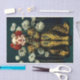 A dramatic and visually rich portrait of a woman in a seated pose, surrounded by blooming white poppies against a deep green backdrop. Her outfit—featuring golden yellow swirling motifs—flows across her arms, legs, and skirt in ornate patterns. With her eyes closed and hands beneath her chin, she radiates serenity and strength. Red and ivory flowers crown her hair, adding contrast and sculptural balance. The entire piece has the feel of carved linework or layered paper art. Artwork similar to a digital illustration with influences of art nouveau, fashion photography, and botanical surrealism…..COLOR COMBINATIONS: Golden yellow, black, ivory, deep green, crimson red, charcoal, and cream…..PERFECT FOR: Art nouveau decoupage, fantasy fashion mixed media, surreal portrait projects......…🖤 NOTE 1. This design is available in two options: Left and Right. You can find them in the Collection shown below. If they don’t appear there, try searching for their unique identifiers: DQ3L for the Left design and DQ3R for the Right version….🖤 NOTE 2. I personally find that 18lb tissue paper is ideal for decoupage. The 10lb paper is much thinner, so it dries faster, which can lead to more wrinkles. The 18lb paper is a bit thicker, giving you more time to work with it and helping to reduce wrinkles..….🖤 NOTE 3. All items with this particular design share my unique identifying “Letter/s Number/s” label in the title for easy searching.