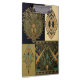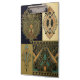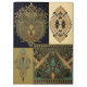 A collage of artistic, art nouveau prints by Christopher dresser. A mixture of arts and craft style , Victorian and art nouveau textile prints. Bold and elegant. In colours of black, gold and green.