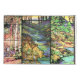 Gorgeous three Panel vintage fine art by Tiffany of an Art Nouveau Stained Glass Window Reproduction of a nature scene, with a Deer drinking at a stream and woods with Flowers is on this Pillowcase. Image is public domain due to expired copyright.