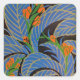 Large blue and tan leaves and bright orange flowers against a black background remind me of a surreal tropical night.