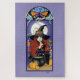 A red haired witch with a cauldron, candle, pumpkins, full moon and a satin glass butterfly