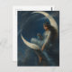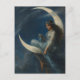 Art nouveau style image of a woman on a crescent moon sprinkling stardust.