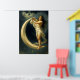 Art Nouveau Woman Riding On A Crescent Moon Poster