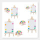 An art painting craft theme ideal for little artists. This beautiful design features an artist's easel and canvas with lot's of colourful paint. A colourful watercolor art design perfect for kids bedrooms.