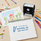 Positive encouraging message self inking stamp for art teachers. Fun stamp featuring painting brushes illustrations and three lines of text you can personalize. The sample lets the teacher praise the student's art and encourage them to keep creating. Change the name and the message to fit your own style of communication and praise.