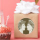 Round sticker with an image of twin deities Artemis and Apollo. See matching confetti, favour tag, label