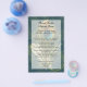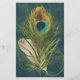 Artful and unique peacock theme matching accessory set. Features stylish, rich and luxurious artwork of a peacock feather detail in colours of cobalt blue, teal and celadon light green. Background in dark aqua blue with an antique wash and swirly design. © 2010 www.CustomInvitesOnline.com